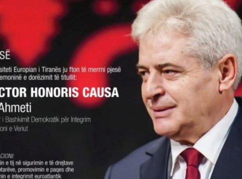 Ali Ahmeti nderohet sot me titullin “Doctor Honoris Causa” nga Universiteti Europian i Tiranës