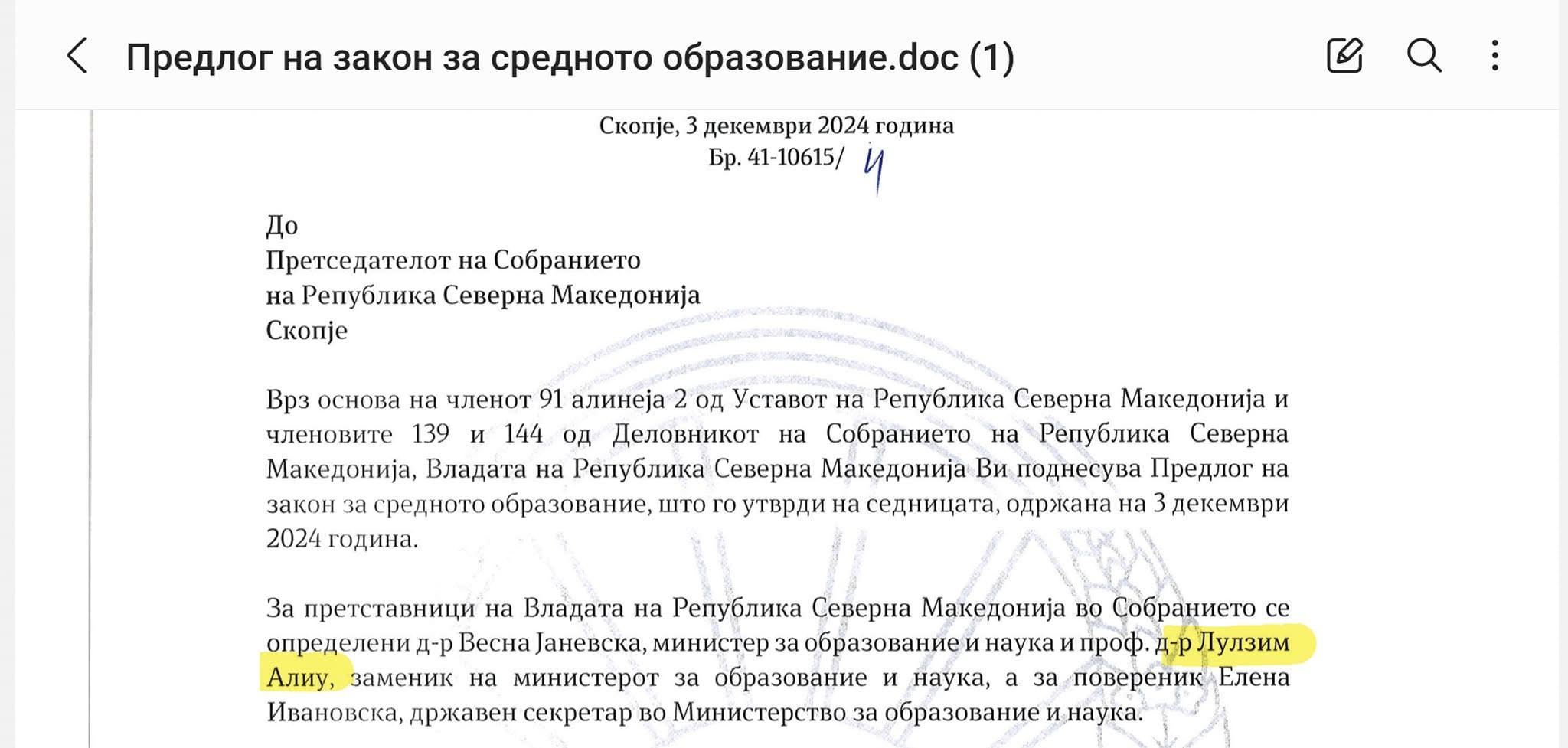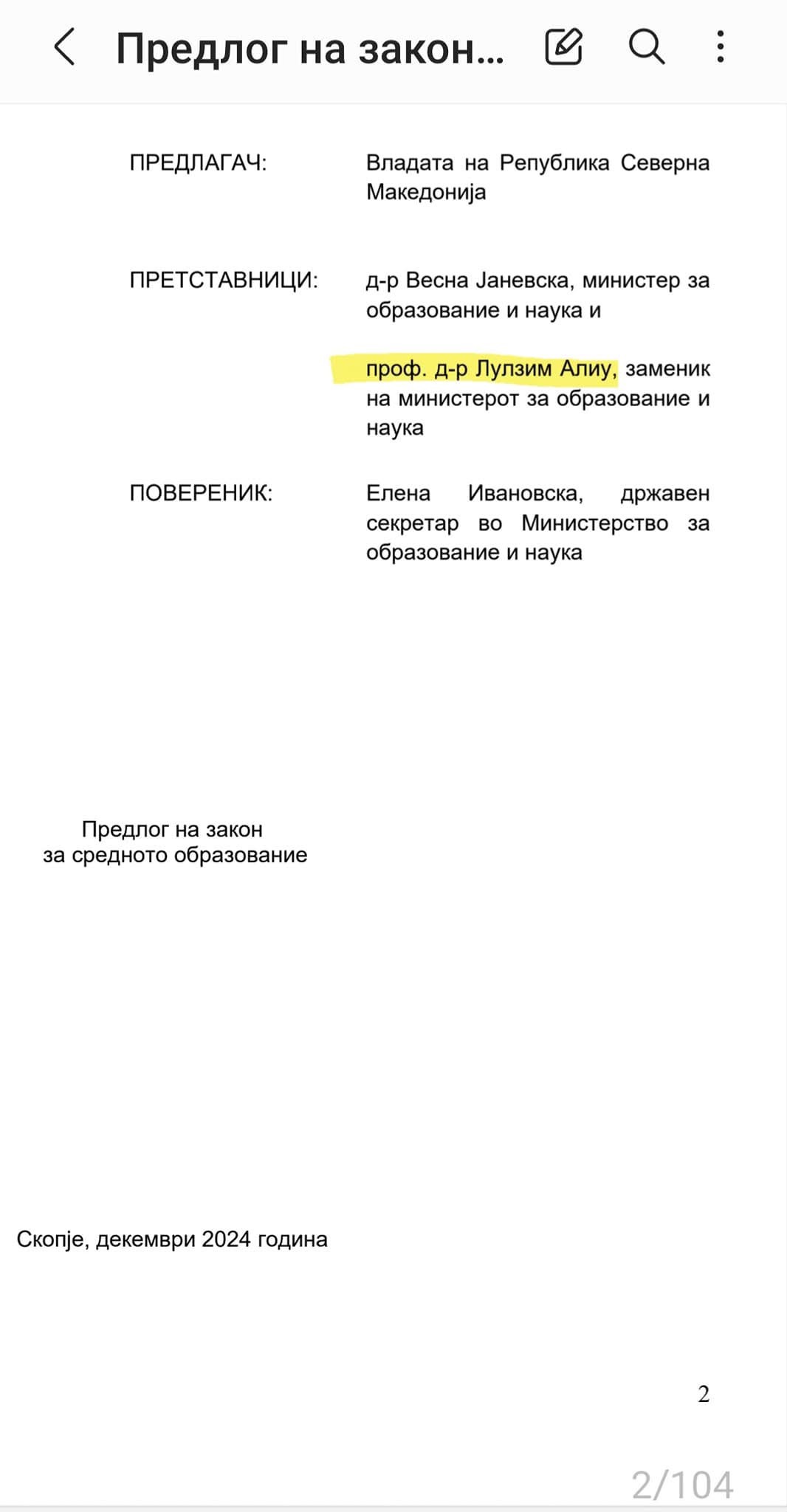 1. Zëvendësministri për Arsim dhe Shkencë, Lulzim Aliu, ka vepruar si përfaqësues i ligjit në emër të Qeverisë dhe ka propozuar miratimin e tij.