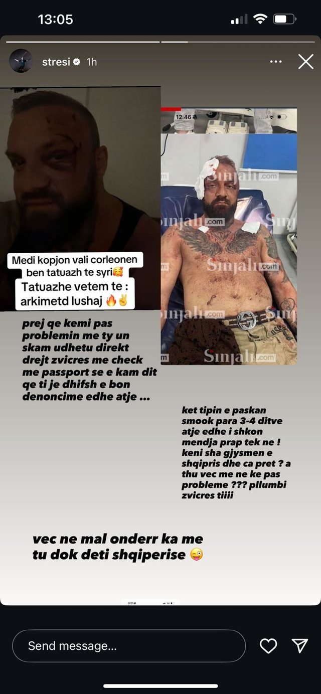 Stresi ka publikuar edhe imazhe të Mediut të dhunuar, duke shkruar se që nga përplasja me të, ai vetë nuk ka udhëtuar më drejt Zvicrës, nga frika se mos kishte ndonjë kallëzim ndaj tij.
