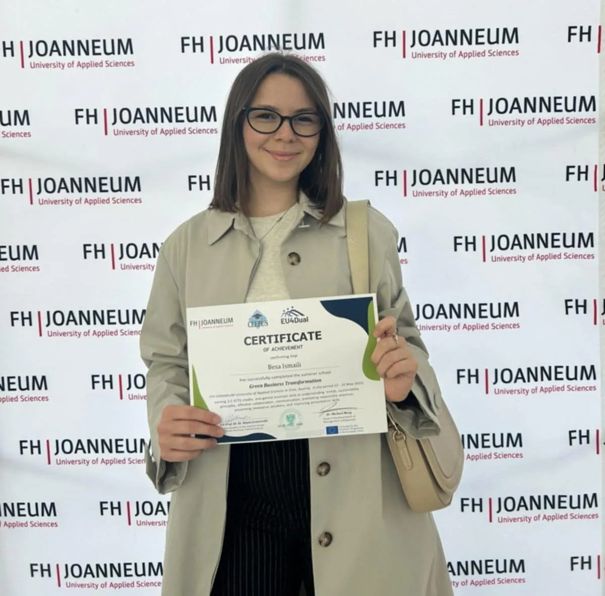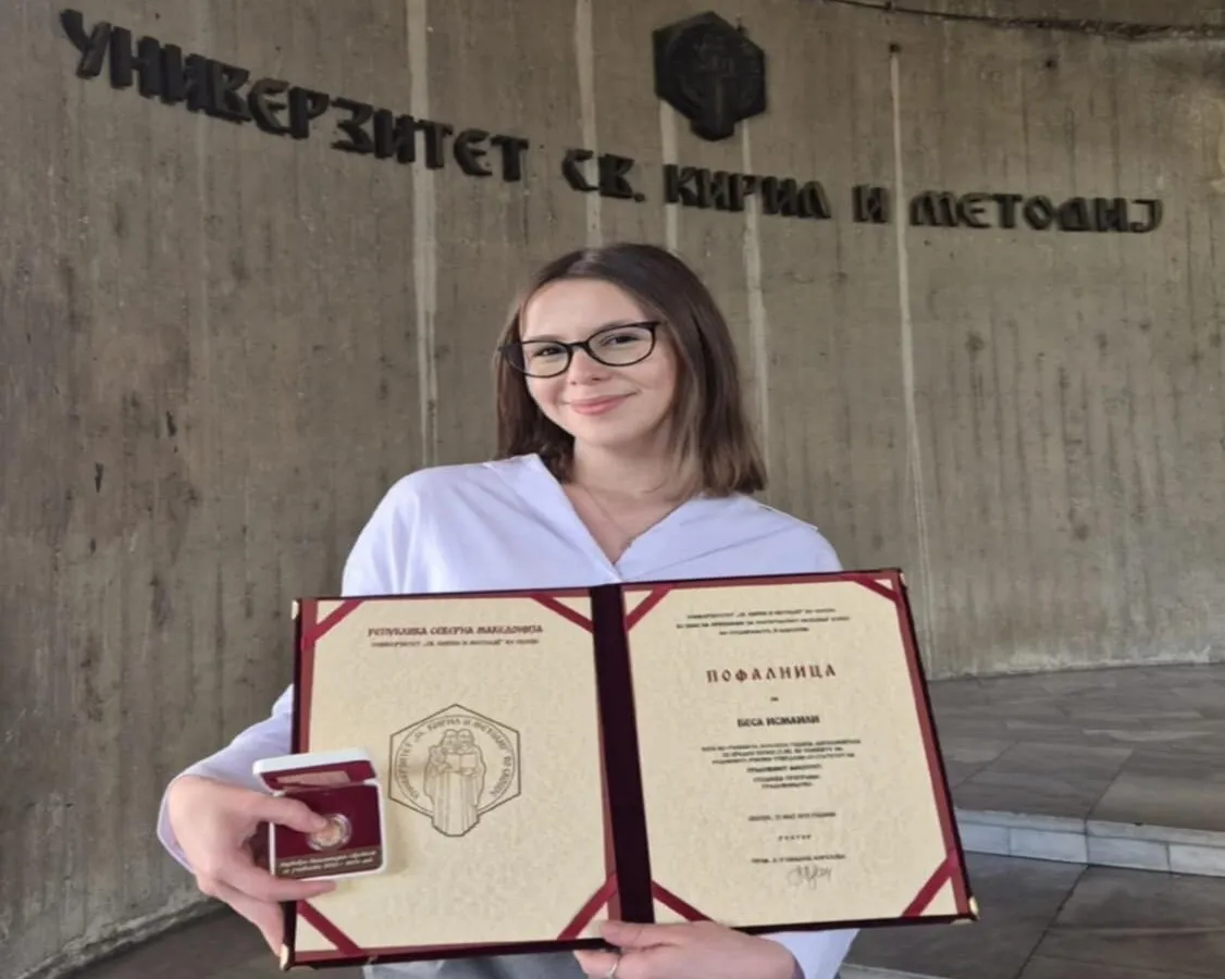 Besa Ismaili u vlerësua nga Universiteti “Shën Kirili dhe Metodi” në Shkup si studentja më e mirë e diplomuar në Fakultetin e Ndërtimtarisë në vitin akademik 2023/2024. Momenti kur ajo u shpall më e mira në gjeneratën, ishte momenti më i lumtur gjatë gjithë studimeve të saj.