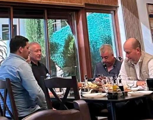 Në foton e parë si është në tavolinë me kryetarin aktual të komunës dhe kandidatin për një mandat tjetër Kiril Pecakov nga VMRO-DPMNE dhe deputetin e kesaj partie, Sashо Donev.