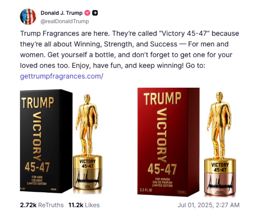“Victory 45-47” i bashkohet koleksionit të aromave të Trump, i cili u lançua për herë të parë në dhjetor, duke shënuar një tjetër hap në zgjerimin e portofolit të tij të biznesit, që nga rikthimi i tij politik.