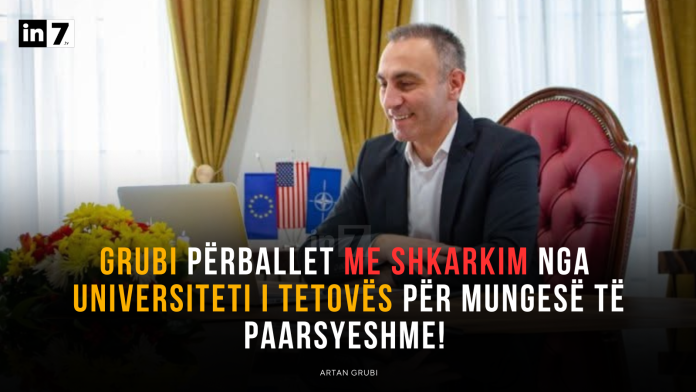 Universiteti i Tetovës ka nisur procedurën ligjore për shkarkimin nga puna të Artan Grubit, i cili mban vendin e punës asistent profesor në Fakultetin Juridik, drejtimi i Gazetarisë. Sipas Safet Emrulit, dekan në Fakultetin Juridik, Artan Grubi, kishte pezulluar vendin e tij të punës shkaku i ushtrimit të funksionit publik edhe atë deri në muajin gusht të këtij viti, kur edhe është kthyer në punë, megjithatë, mungesa prej disa ditësh e tij pa dhënë sqarim nënkupton marrjen e masave ndaj tij.