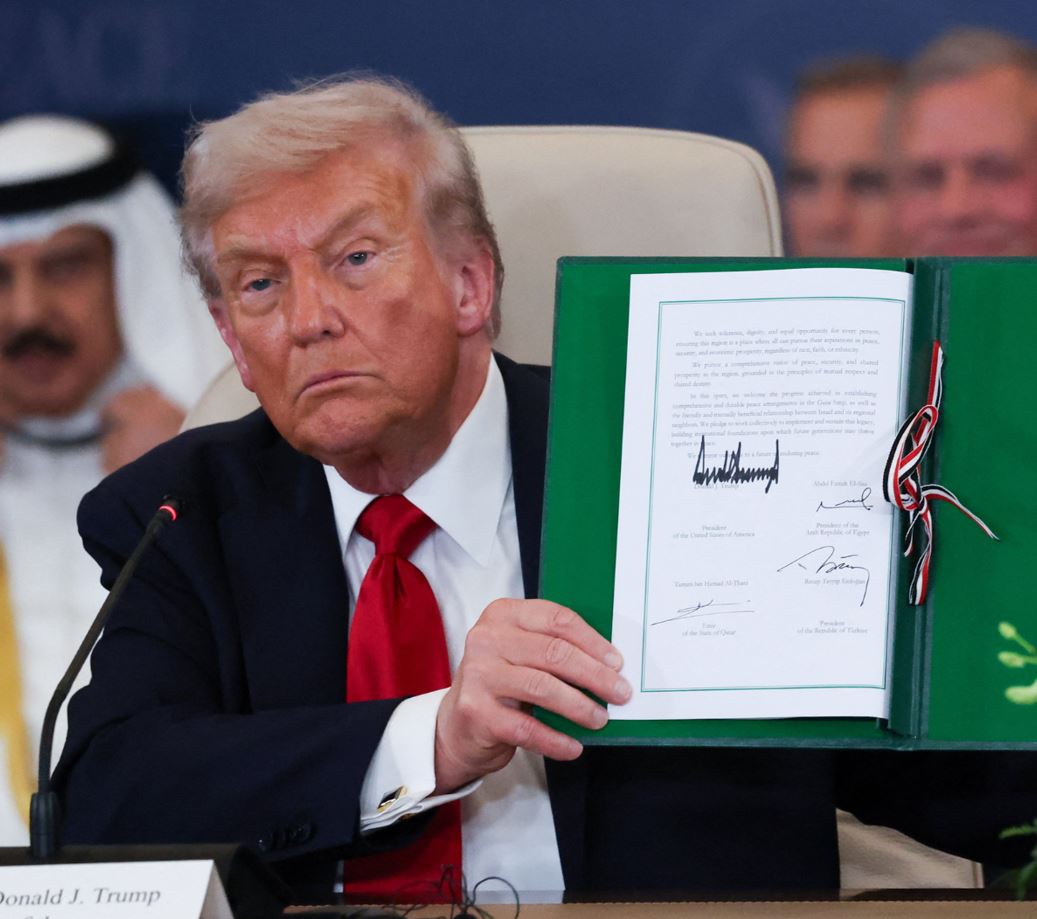 Presidenti i Shteteve të Bashkuara, Donald Trump, e nënshkroi të hënën në Egjipt planin e tij për paqe në Lindjen e Mesme, krahas negociatorëve nga Egjipti, Katari dhe Turqia.