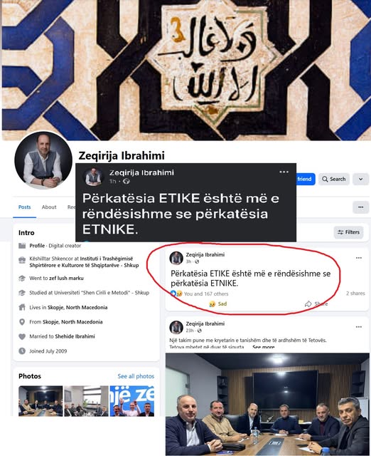 “Përkatësia etike është më e rëndësishme se përkatësia etnike”, thotë Zeqirija Ibrahimi, kryetar i partisë politiko-fetare “Alternativa”, e që në mënyrë implicite bën thirrje që të mos votohet kandidati i vetëm shqiptar, por ai sllav, që të sundoj mbi shqiptarët e Kërçovës pas zgjedhjeve të 2 nëntorit. Këtë e kërkon njeriu, që në vend të Rilindjes Kombëtare na rikujton Xhemijetin e Stambollit dhe Nikolla Pashiqit.