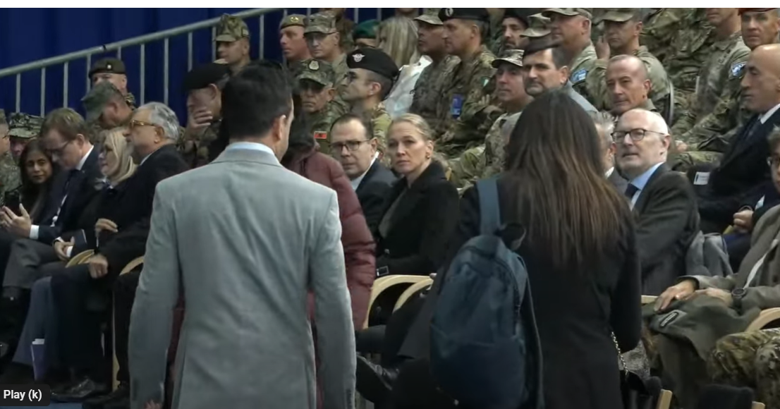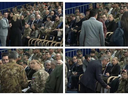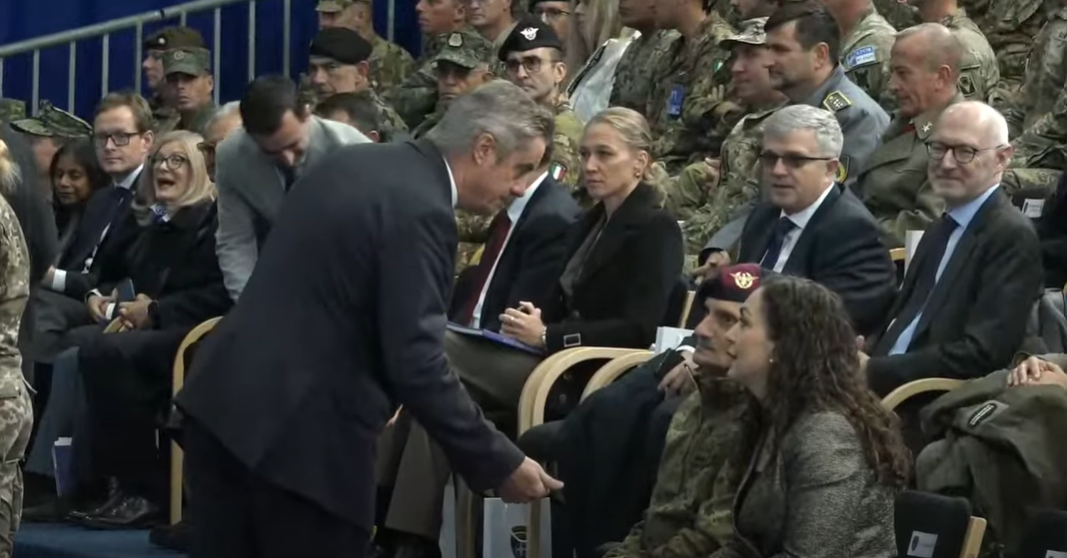 Madje në një moment, shihen disa pjesëtarë të KFOR-it me letra në dorë dhe pas komunikimit me Bashën, ky i fundit ‘akomodohet’ në një pjesë më lart.