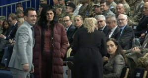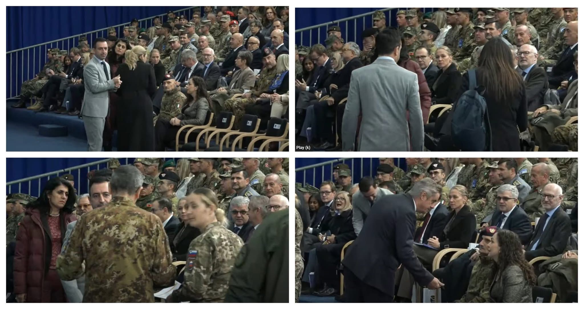 Nga transmetimi live i ngjarjes në disa mediume, vërehet se si kryeparlamentari Basha, për disa minuta qëndron në këmbë për të pritur se ku të ulet, ndërkohë që Presidentja Vjosa Osmani vetëm e vështron.