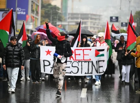 Nën moton “S’ka paqe pa çlirim”, të shtunën më 18 tetor në Shkup, u mbajt një marsh protestues në solidaritet me popullin palestinez dhe kundër vazhdimit të okupimit dhe gjenocidit në Gazë. Marsh, i organizuar nga iniciativa “Të gjithë për Palestinën” filloi para monumentit “Simfonia e Paqes” (përballë gjimnazit “Josip Broz Tito”) dhe vazhdoi deri te ndërtesa e Qeverisë së Republikës së Maqedonisë së Veriut, transmeton Portalb.mk.