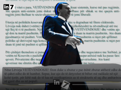Por, në raport me këtë ‘zbutje’, Albin Kurti i Vetëvendosjes, në vizionin më të hershëmn politik të tij, ishte shprehur rreptëssht kundër. Kështu në një dokument që është produkt i mendjes dhe duarve të tij, i shkruar më 2016, me titull “Mbi Organizimin Politik” (faqe 45, kapitulli “Fitorja është Revolucionare”), kishte treguar se çfarë do t’i ndodhte Vetëvendosjes po të zbutej, e aq më pak që Vetëvendosja të fitonte pushtet përmes zbutjes.