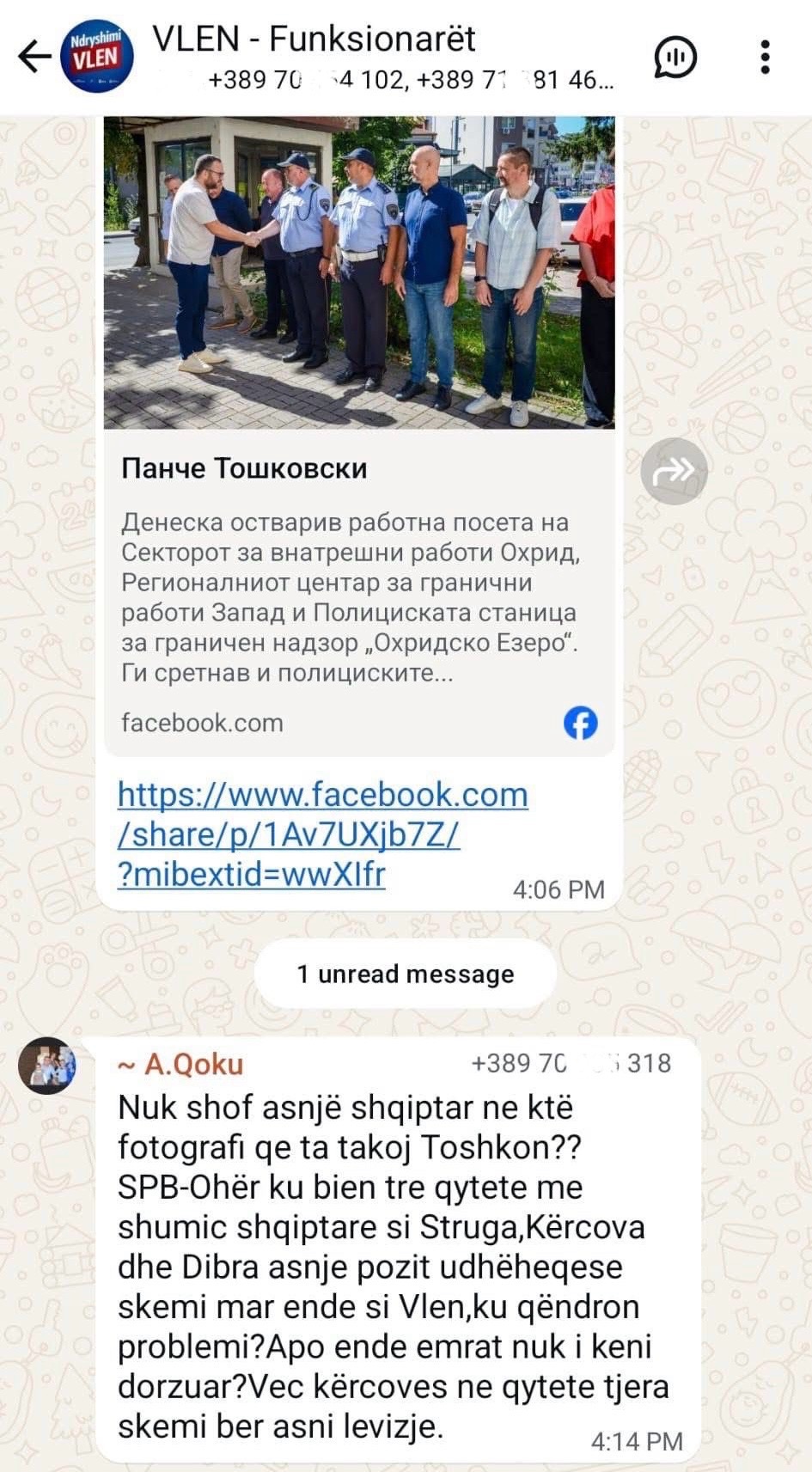 Deputeti i Kuvendit të Maqedonisë së Veriut dhe pjesë e shumicës qeverisëse, Bekim Qoku, ka reaguar ashpër pas publikimit të një fotografie nga vizita e ministrit të Punëve të Brendshme Pançe Toshkovski në SPB Ohër dhe njësitë përkatëse të sigurisë kufitare.