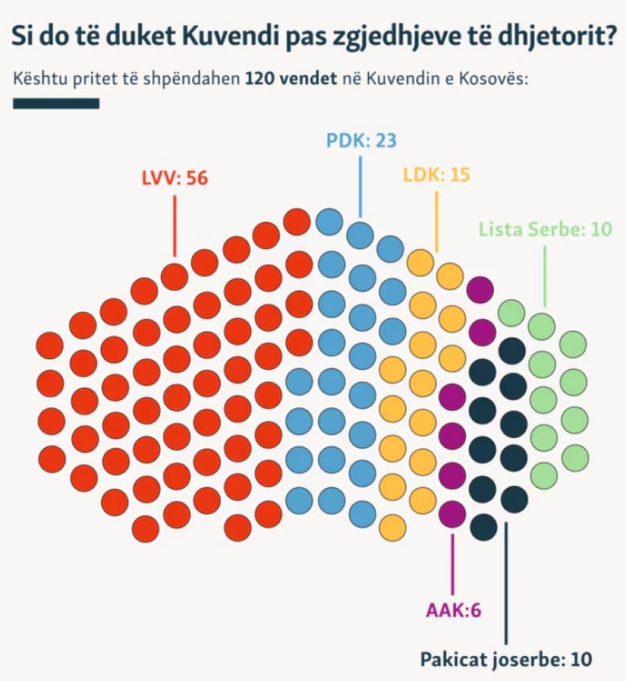Në zgjedhjet e dhjetorit, LVV ka siguruar 56 ulëse në Kuvend, PDK 23 ulëse, LDK ka siguruar 15 ulëse dhe AAK vetëm 6.