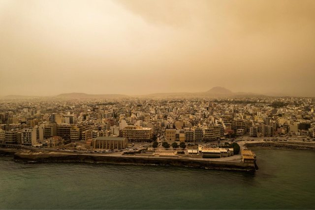 Pluhuri afrikan ka krijuar një peizazh të frikshëm në Heraklion dhe Hania të Kretës në Greqi, ku qielli ka marrë ngjyrë portokalli.