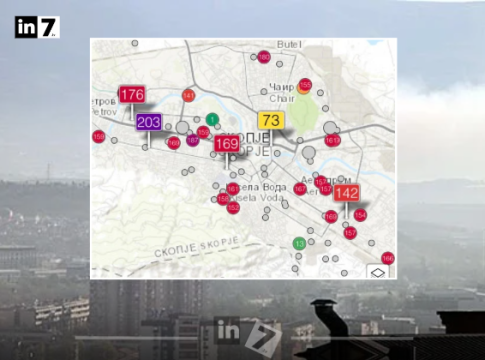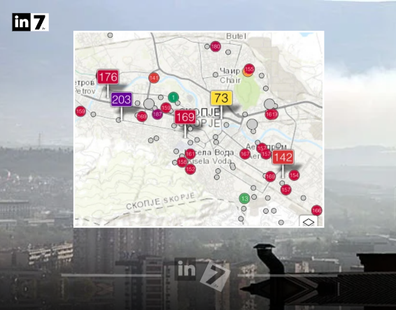 Sipas matjeve të indeksit të cilësisë së ajrit (AQI), niveli i ndotjes në Shkup ka kaluar pragun e “të pashëndetshëm”, me vlera rreth 150–160, ndërsa përqendrimi i grimcave të rrezikshme PM2.5 është disa herë mbi normat e lejuara.