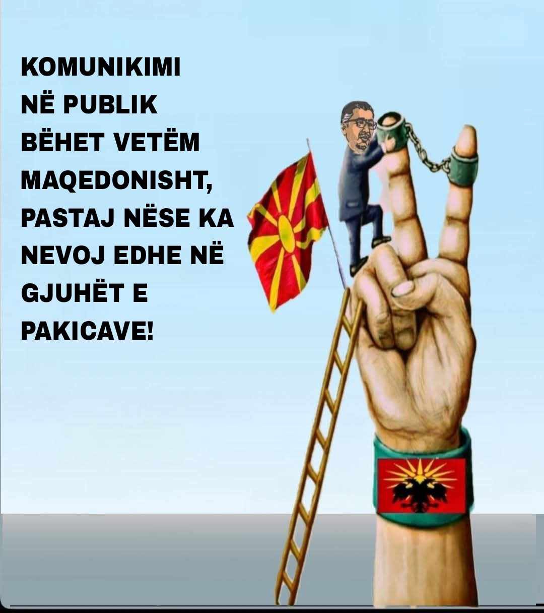 Kjo është gjuha e autoritarizmit dhe e shovinizmit që po përdor kryekomiti Micko, ndaj gjuhës shqipe dhe ndaj shqiptarëve duke na trajtuar si nomadë të 20%, pa gjuhë dhe pa identitet, ndërsa nga ana tjetër ankohet dhe qurravitet para ndërkombëtarëve për mohimin e gjuhës së tij nga Bullgaria, sesi ajo nuk e njeh gjuhën dhe identitetin maqedon, këtë të drejtë që ai, ia mohon shqiptarëve!