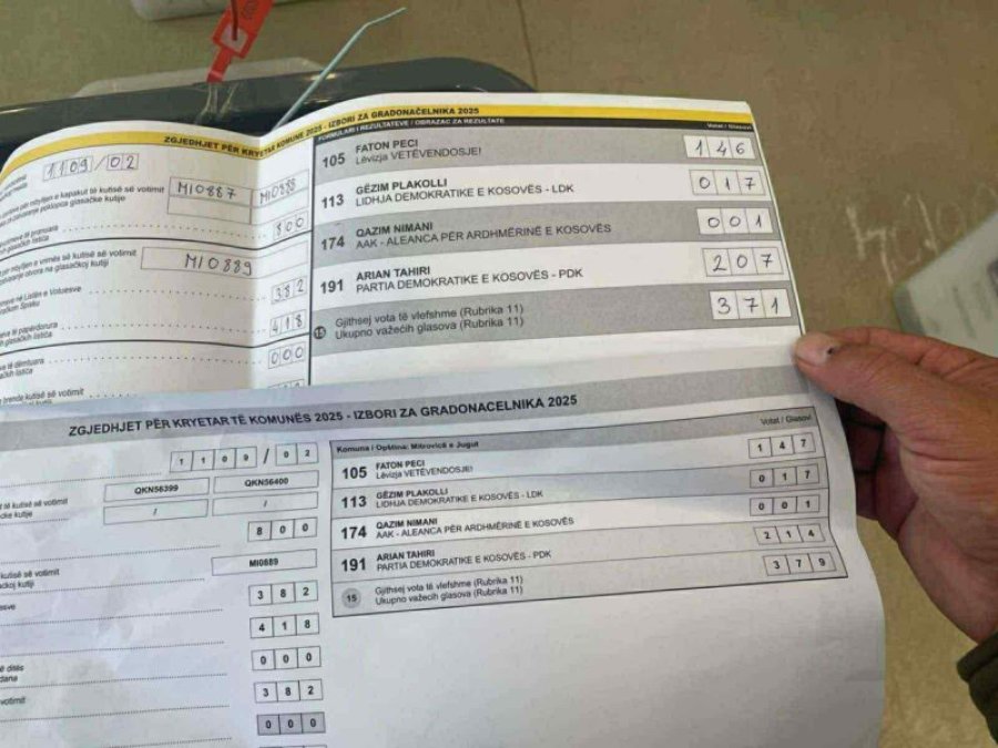 ‘Drama’ e zgjedhjeve në Mitrovicën Jugore po vazhdon akoma. Kjo për shkakun se rezultati mes dy kandidatëve kryesor atje, me Arian Tahirit të Partisë Demokratike të Kosovës, dhe Faton Pecit, të Lëvizjes Vetëvendosje, shfaq një diferencë të vogël mes tyre, më saktësisht nga rezultate preliminare, dallimi është 28 vota.