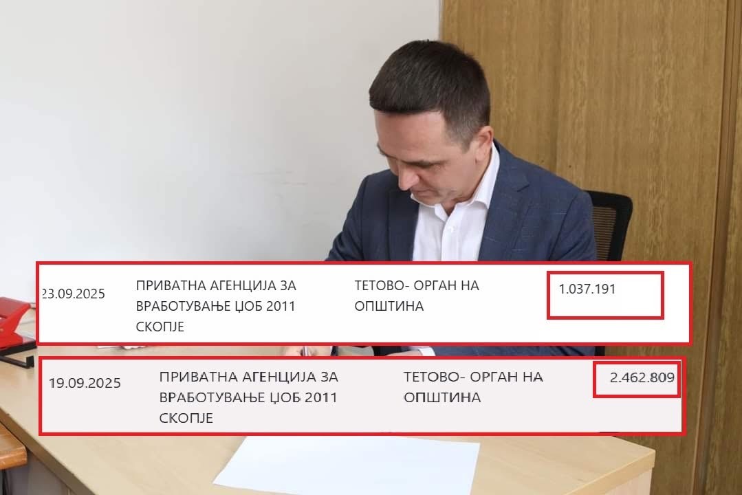 Sipas të dhënave nga OpenFinance, më datë 23.09.2025 dhe me 19.09.2025 kryetari i Komunës së Tetovës ka lëshuar mbi 3.5 milionë denarë në drejtim të agjencisë XHOB2011. Këto mjete janë përdorur për të paguar militantët e Lëvizjes BESA, parti që udhëhiqet nga vetë Bilall Kasami.